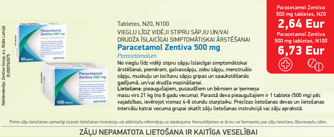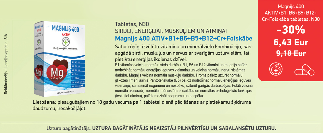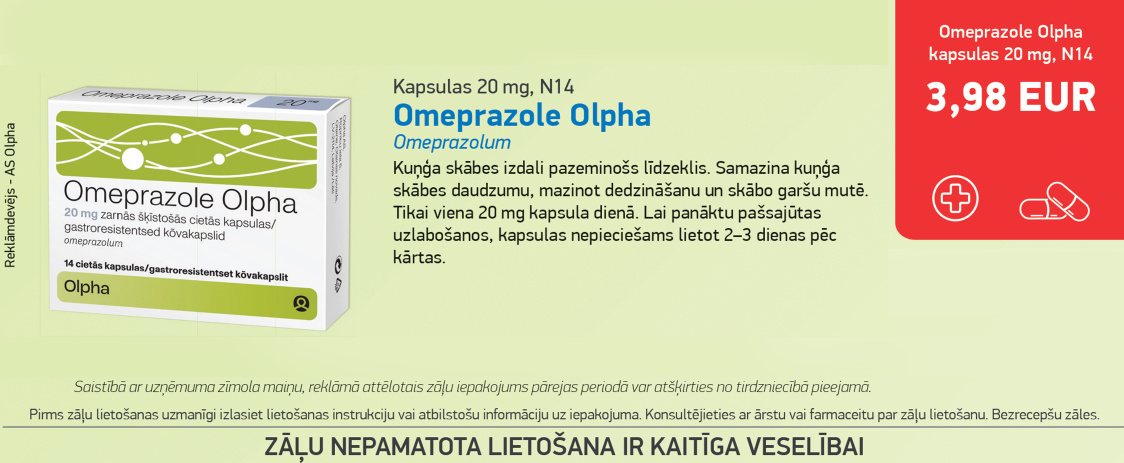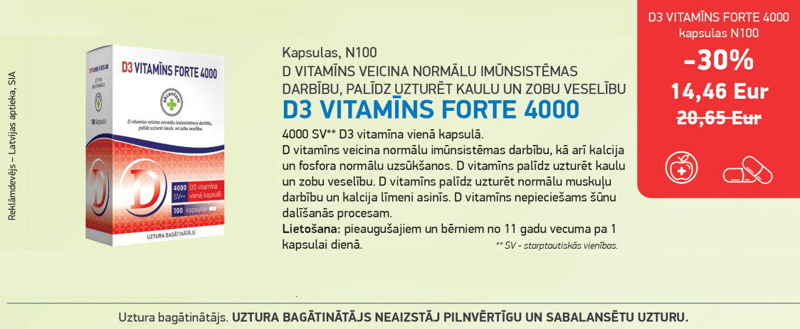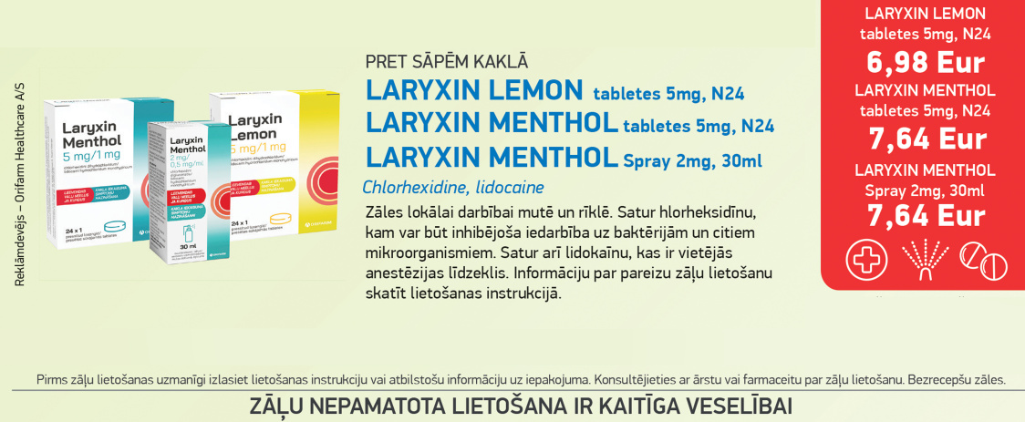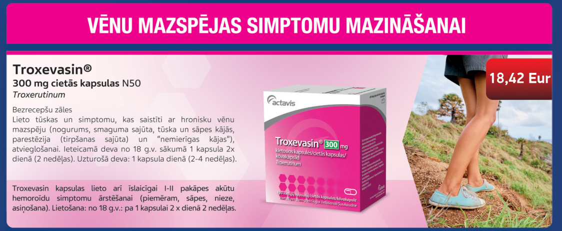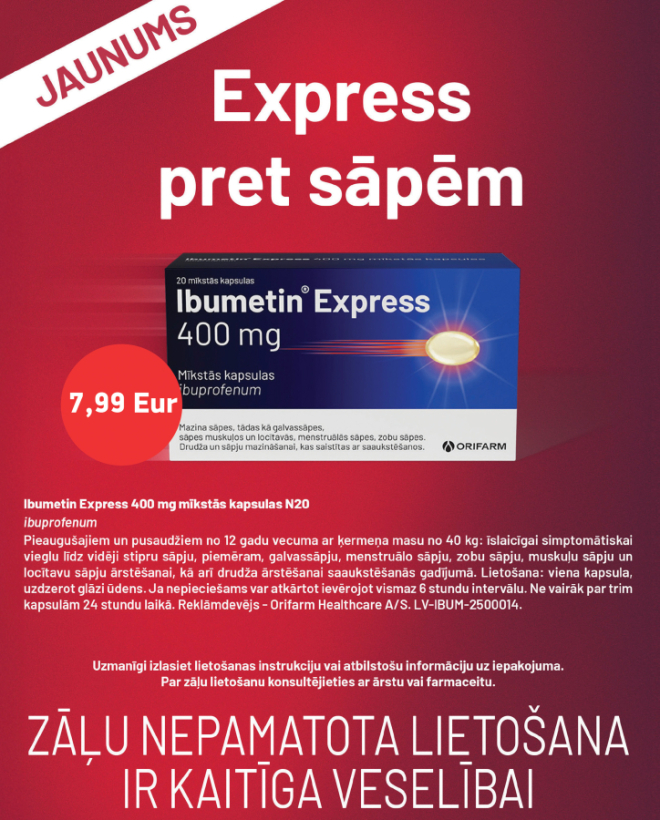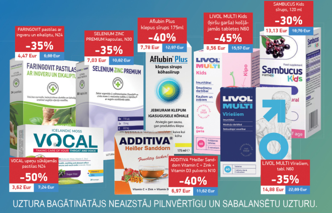 Gadījumā, ja ir radusies neatbilstība starp šajā piedāvājumā un aptiekā pieejamo informāciju, saistoša ir aptiekā norādītā informācija. Aicinām pirms zāļu lietošanas rūpīgi iepazīties ar zāļu lietošanas instrukciju!